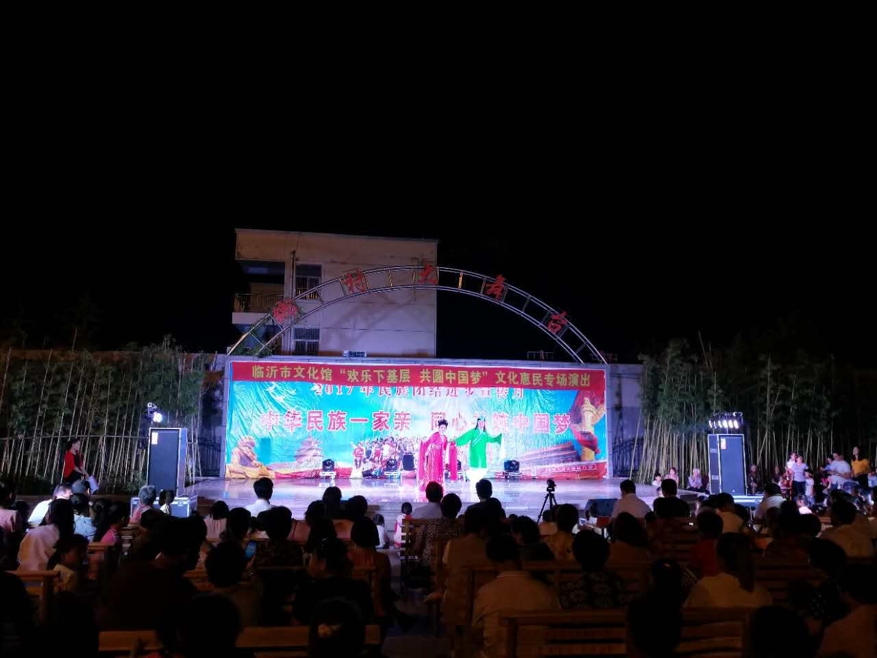 文艺演出包括民族舞蹈、柳琴戏、歌唱等多种节目形式,节目内容健康向上、催人奋进,表达了各族群众建设伟大祖国、建设美丽家乡的美好愿望。演员们精湛、娴熟的表演,让现场群众看得如痴如醉,喝彩声、掌声不断。