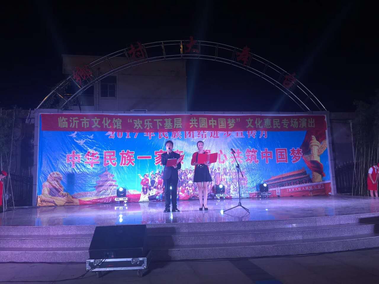 为营造民族团结进步创建浓厚氛围,增强创建活动亲和力、感染力,激发各族群众的参与热情,提升各族群众的获得感,9月19日晚,临沂市民宗局联合文广新局组织开展了“中华民族一家亲 同心共筑中国梦”文艺巡演下基层活动。市委统战部副部长、市民宗局局长任建军,市民宗局副局长沙益薇、李玉珍参加活动。